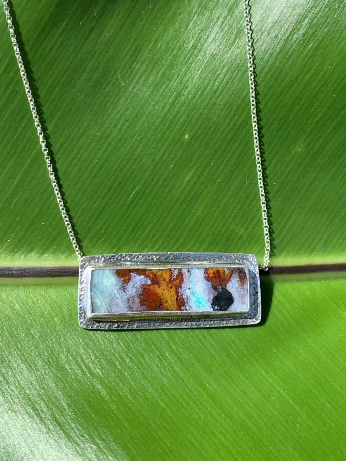 Multicolored Opal - Rectangle shape (30 mm x 10 mm ), 18 in rolo chain