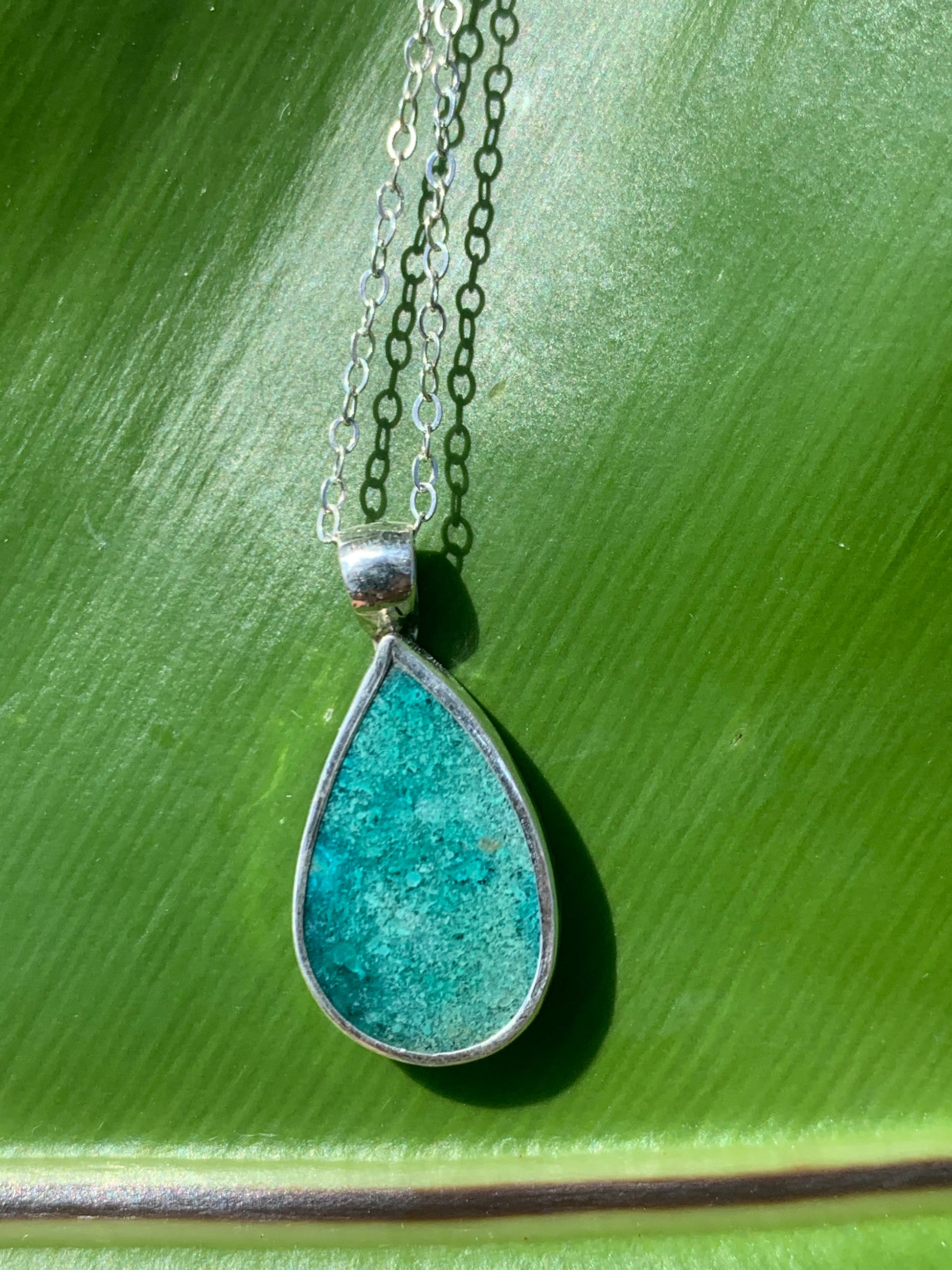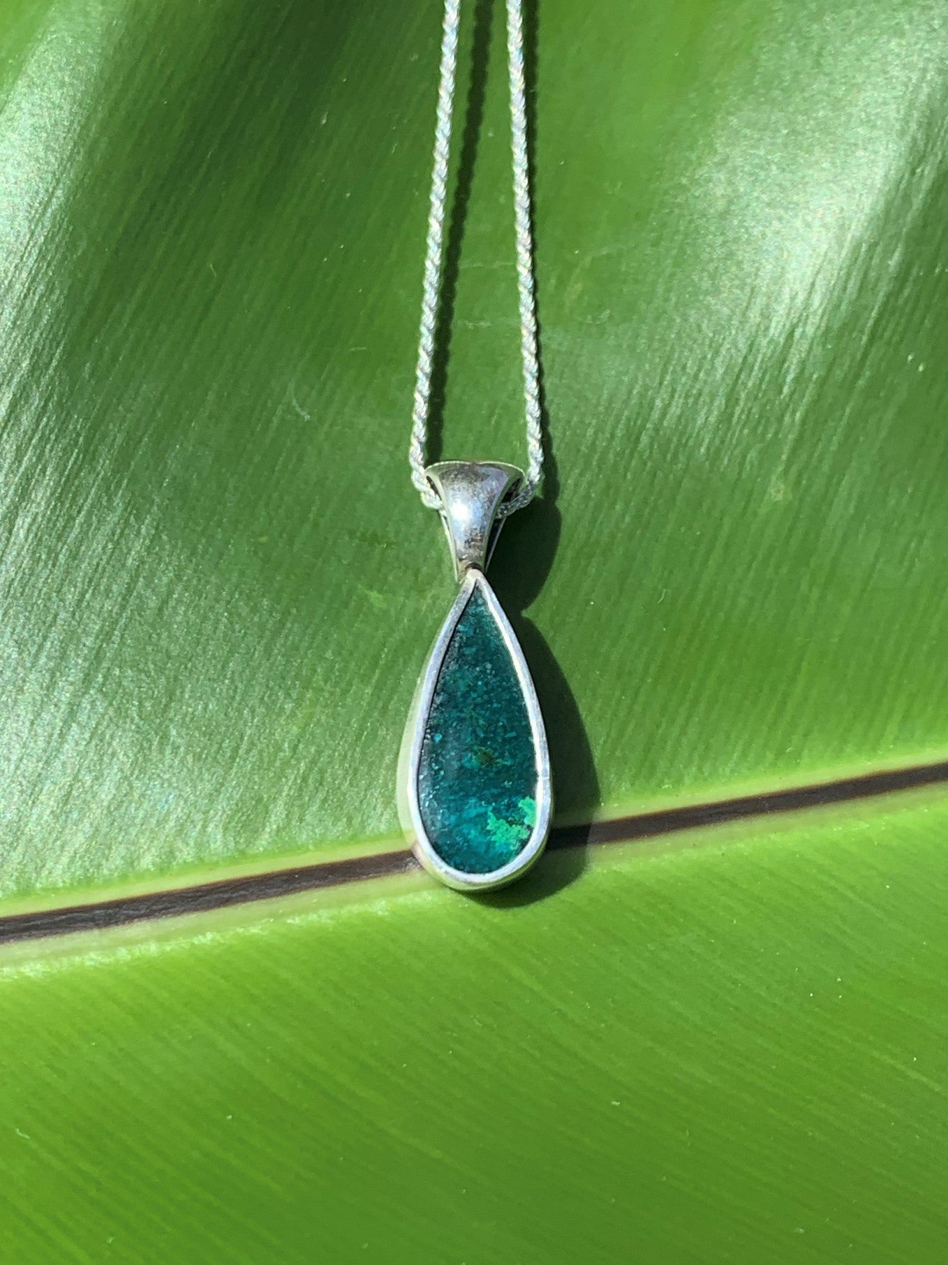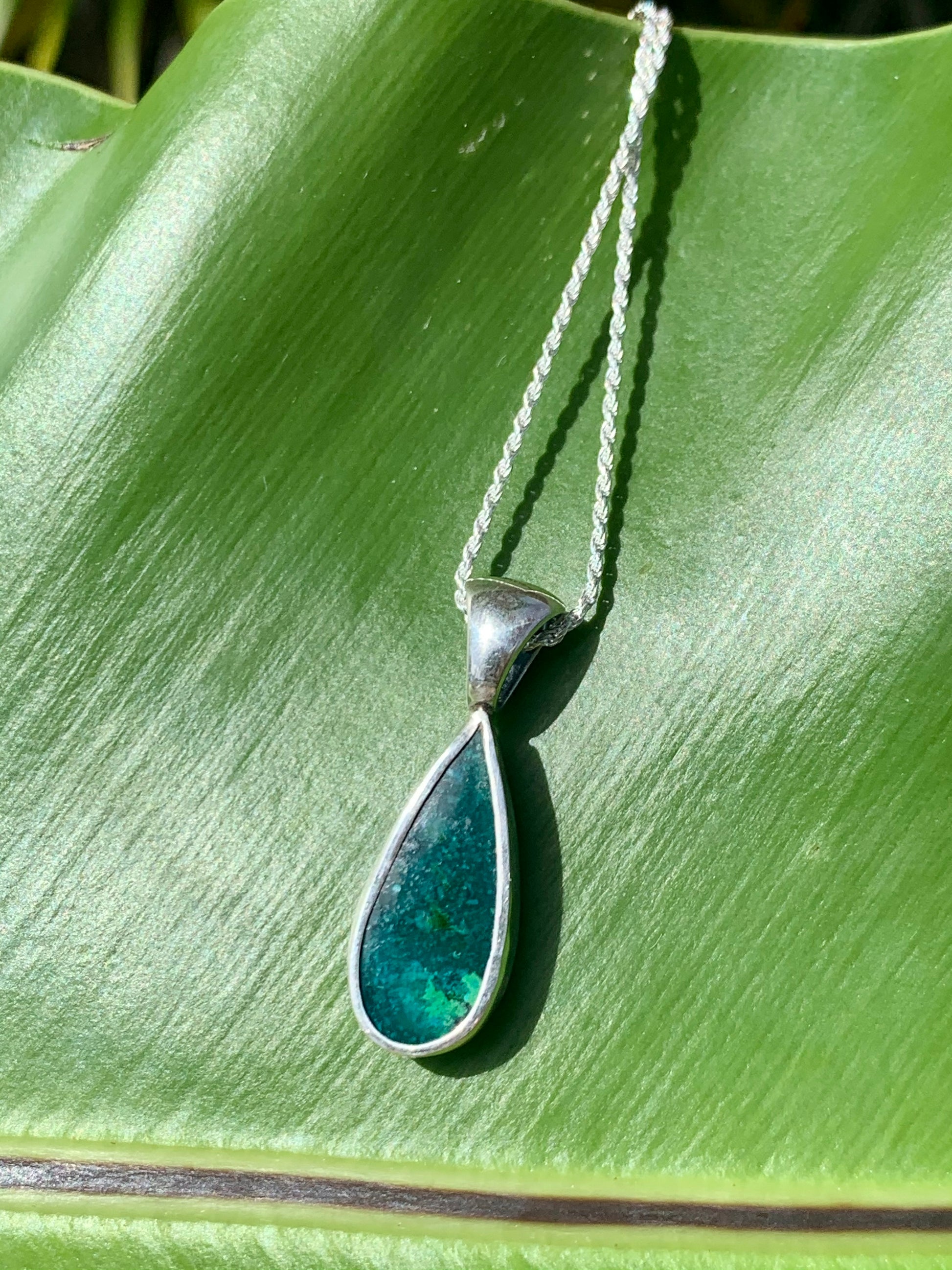 Blue Opal B - Teardrop shape (24 mm x 11 mm ), 18 in diamond cut rope chain