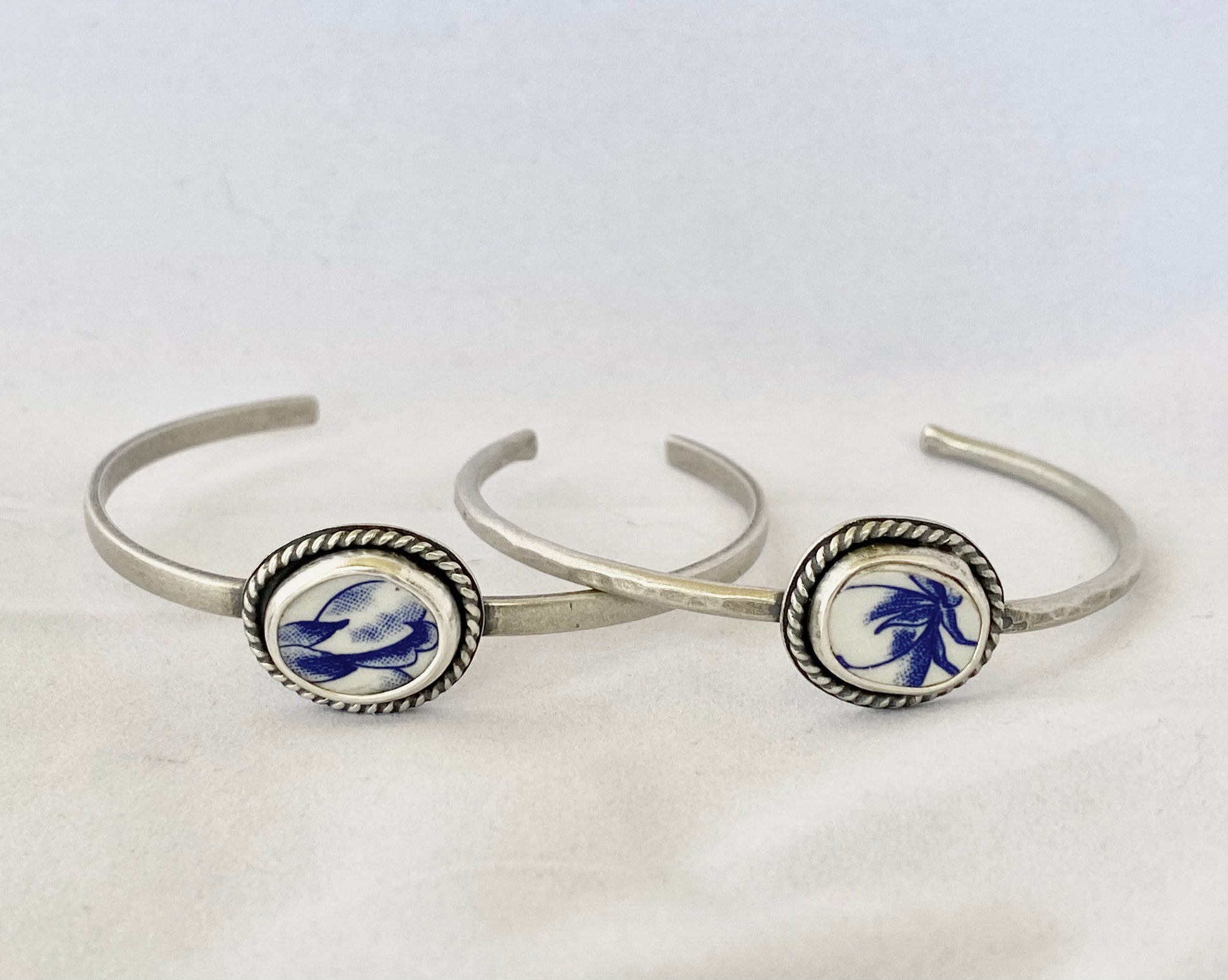 These cuffs are part of the Braveheart Collection, a collection named after the cat who broke these English Tea Sets, allowing us to make them into jewelry.