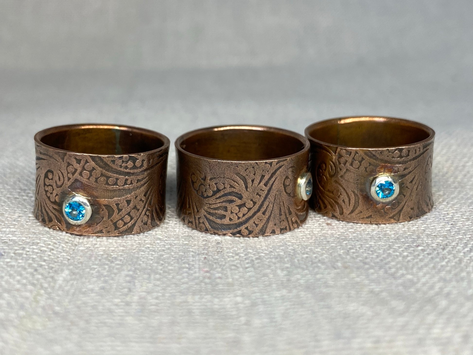Materials: Copper, Fine Silver (.999), Swarovski Paraiba Blue Topaz 3 mm