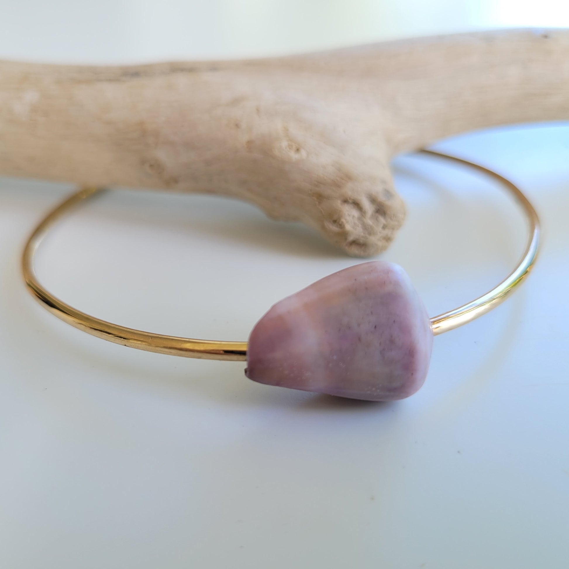 Guam found purple cone shell bangle made out of 14K Gold Filled 12 gauge wire. You will receive the bangle that is pictured. Fits like a Medium to Larger size.