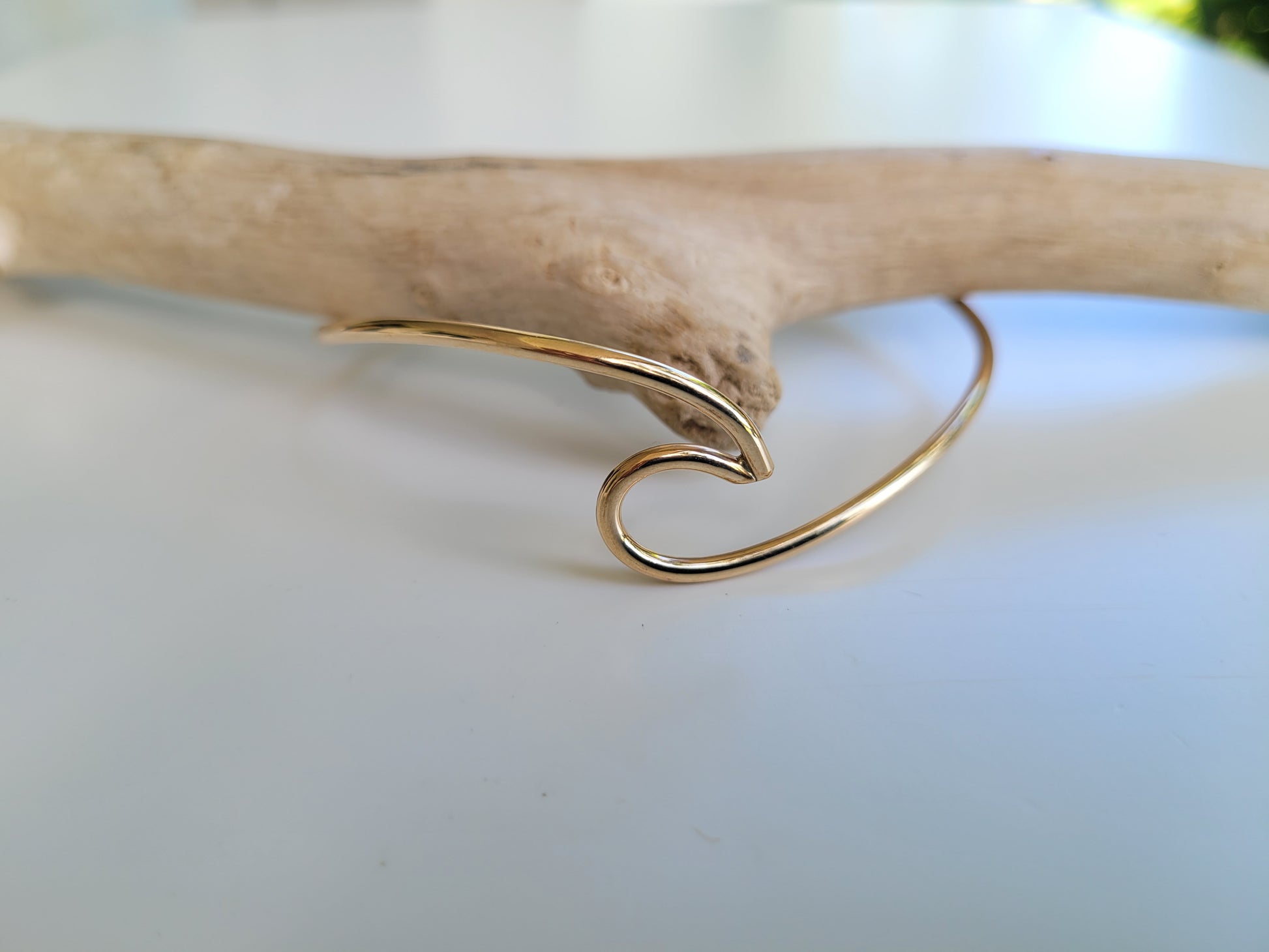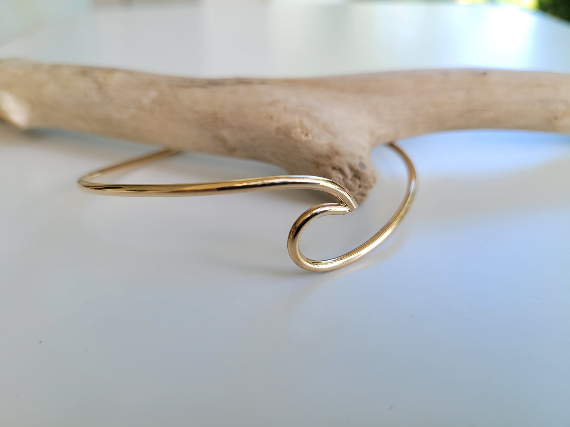 Nåpu bangles are made out of 14K Gold Filled 12 gauge wire. Each one is hand formed and thus no two are alike. Three are available now for purchase. You will receive the bangle that is pictured. These are on the Medium to Larger size with a plain texture.