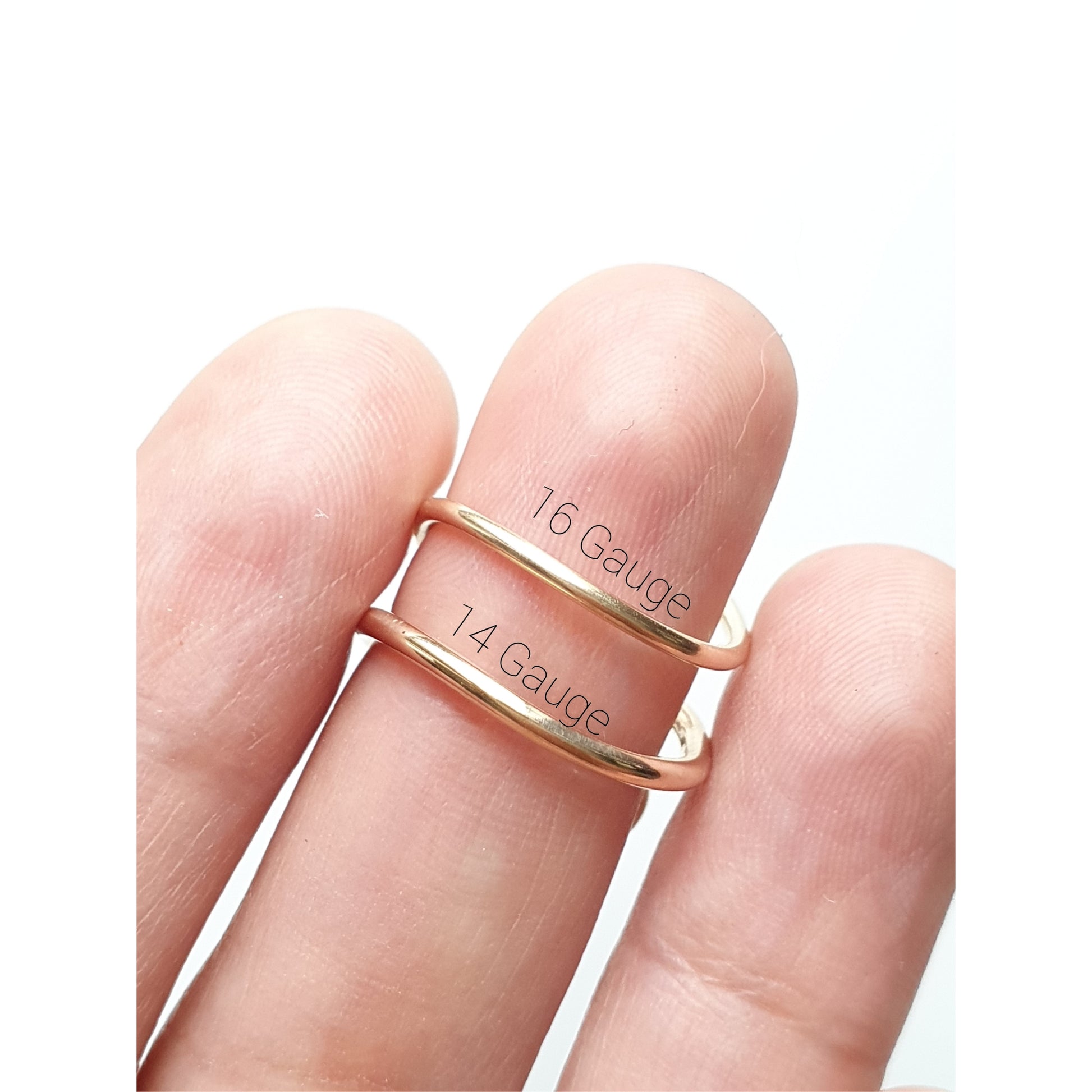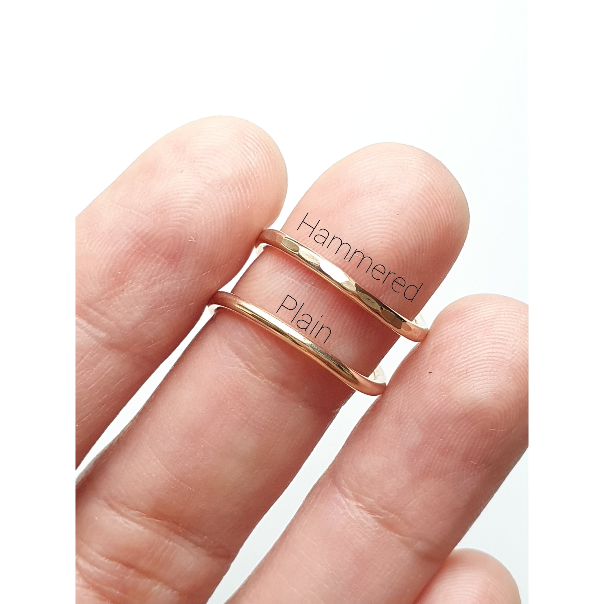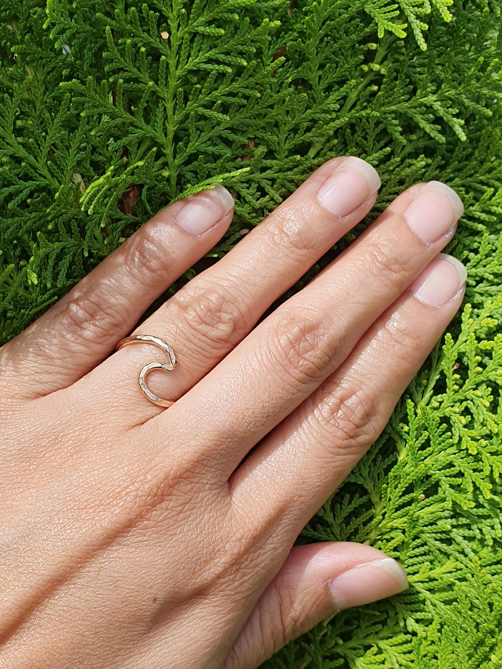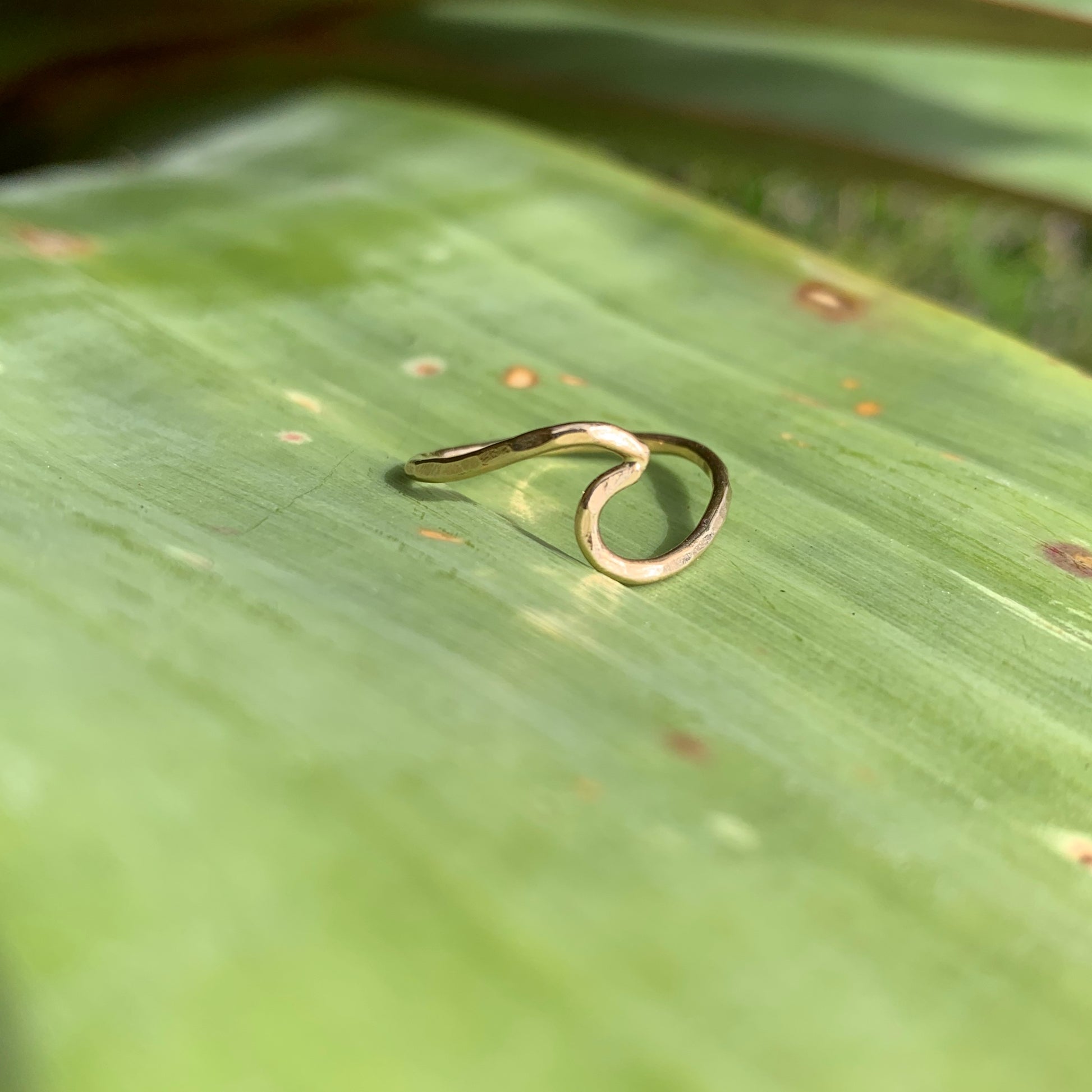 Each Nåpu Ring is hand shaped, therefore each wave is unique. These rings are made out of 14K Gold Fill in either a thin (16 Gauge) or thick (14 Gauge) wire and your choice of a plain or hammered texture.