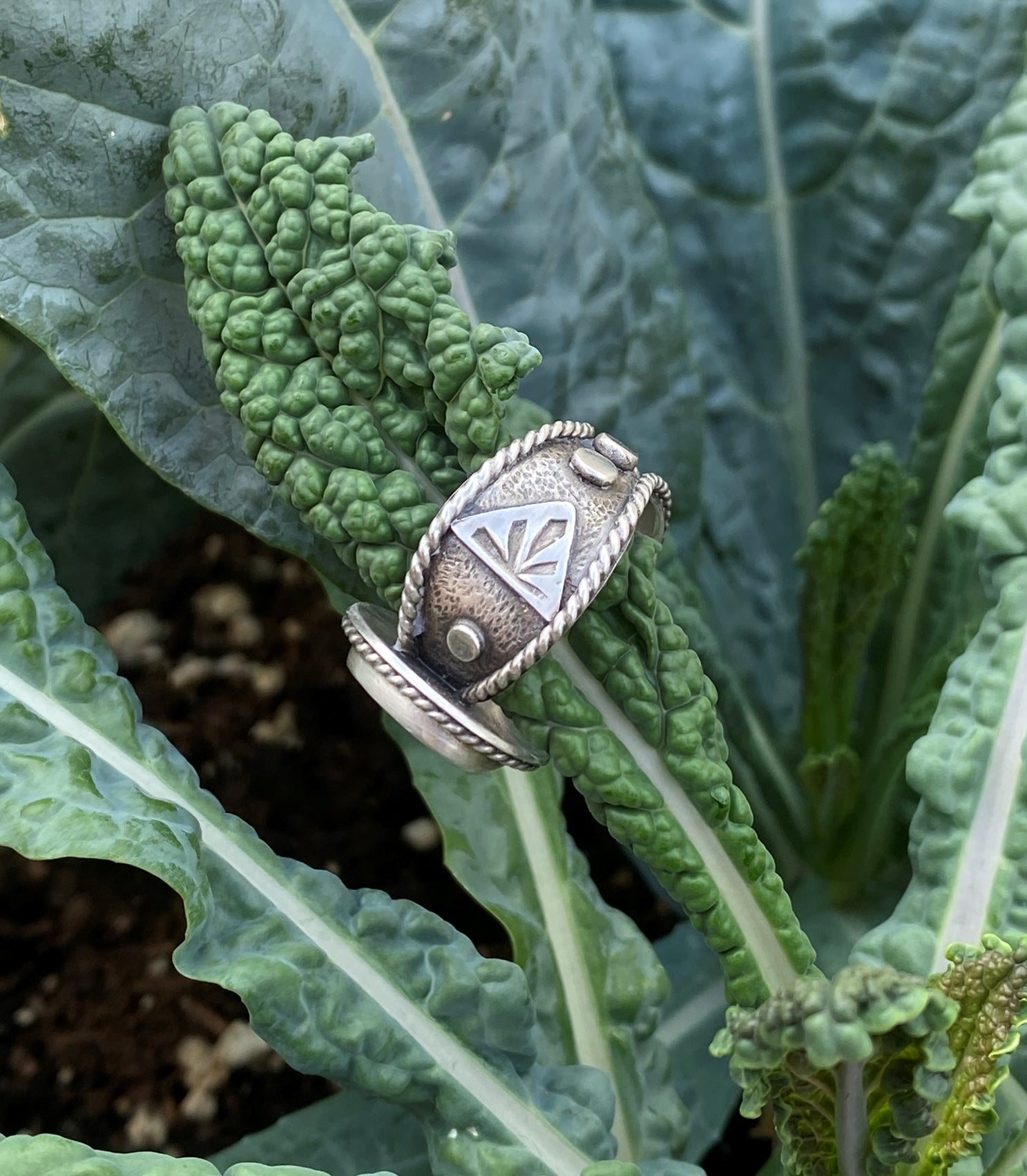 Fine Silver (.999) Bezel, Sterling Silver (.925) Band and Backplate