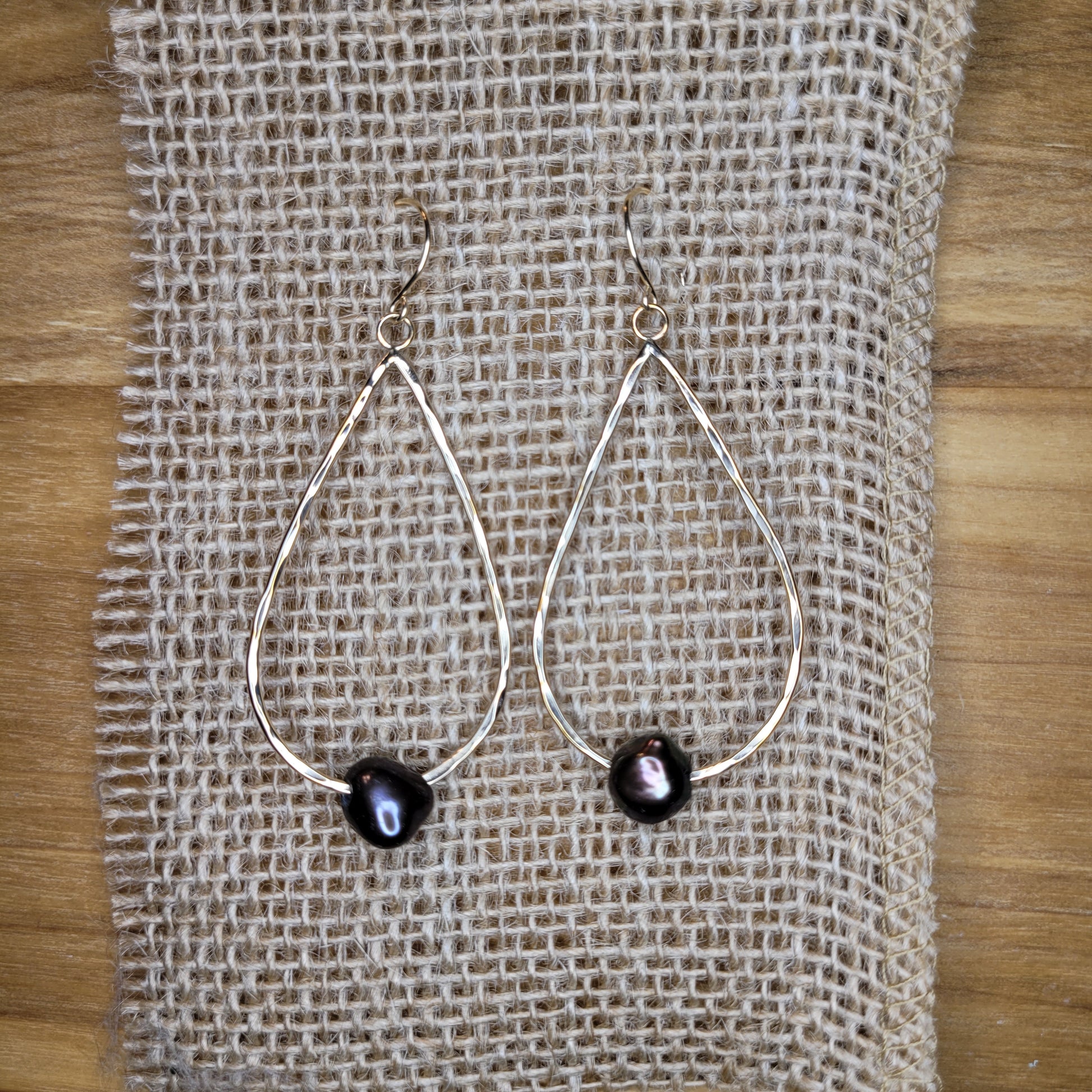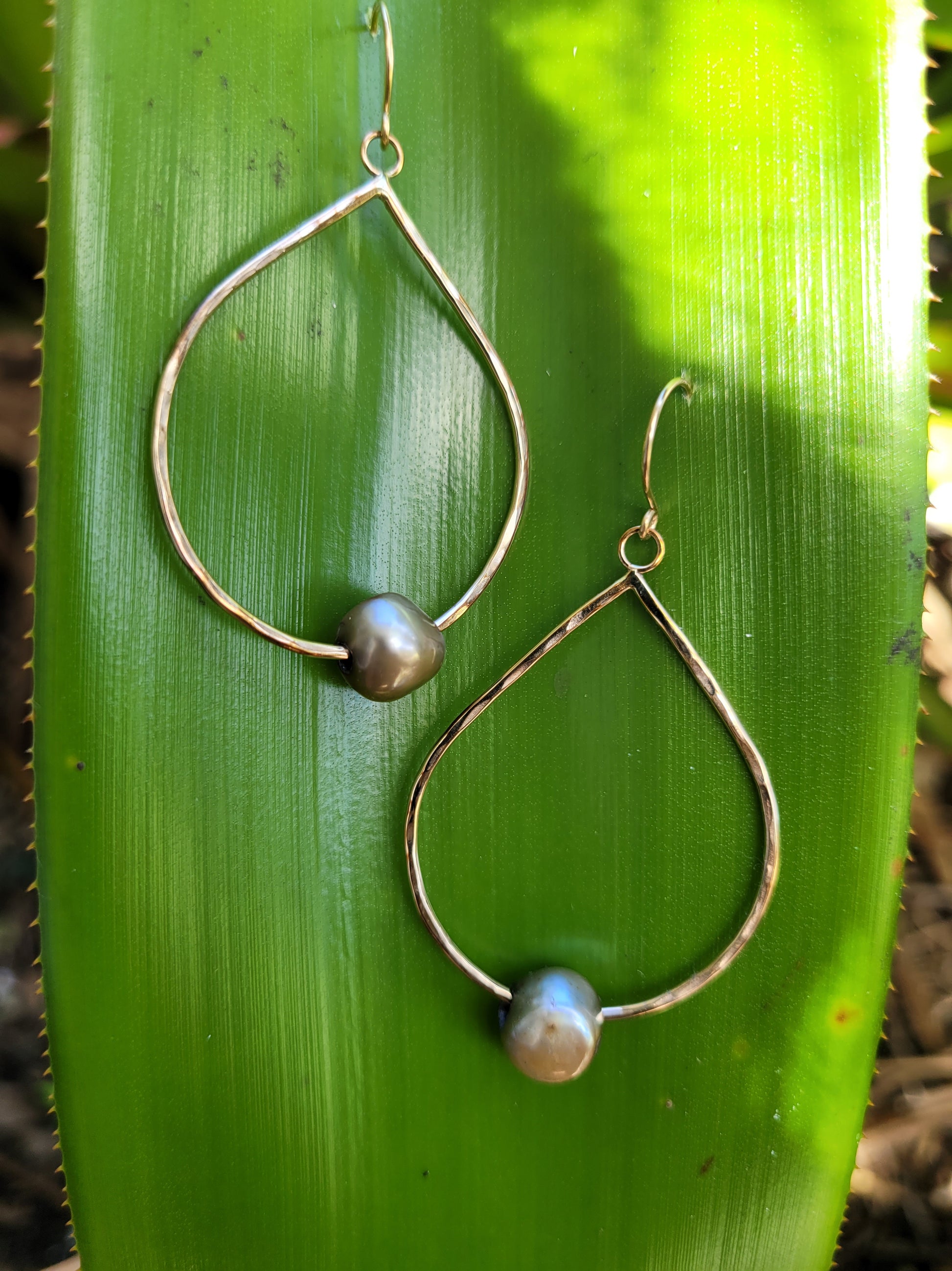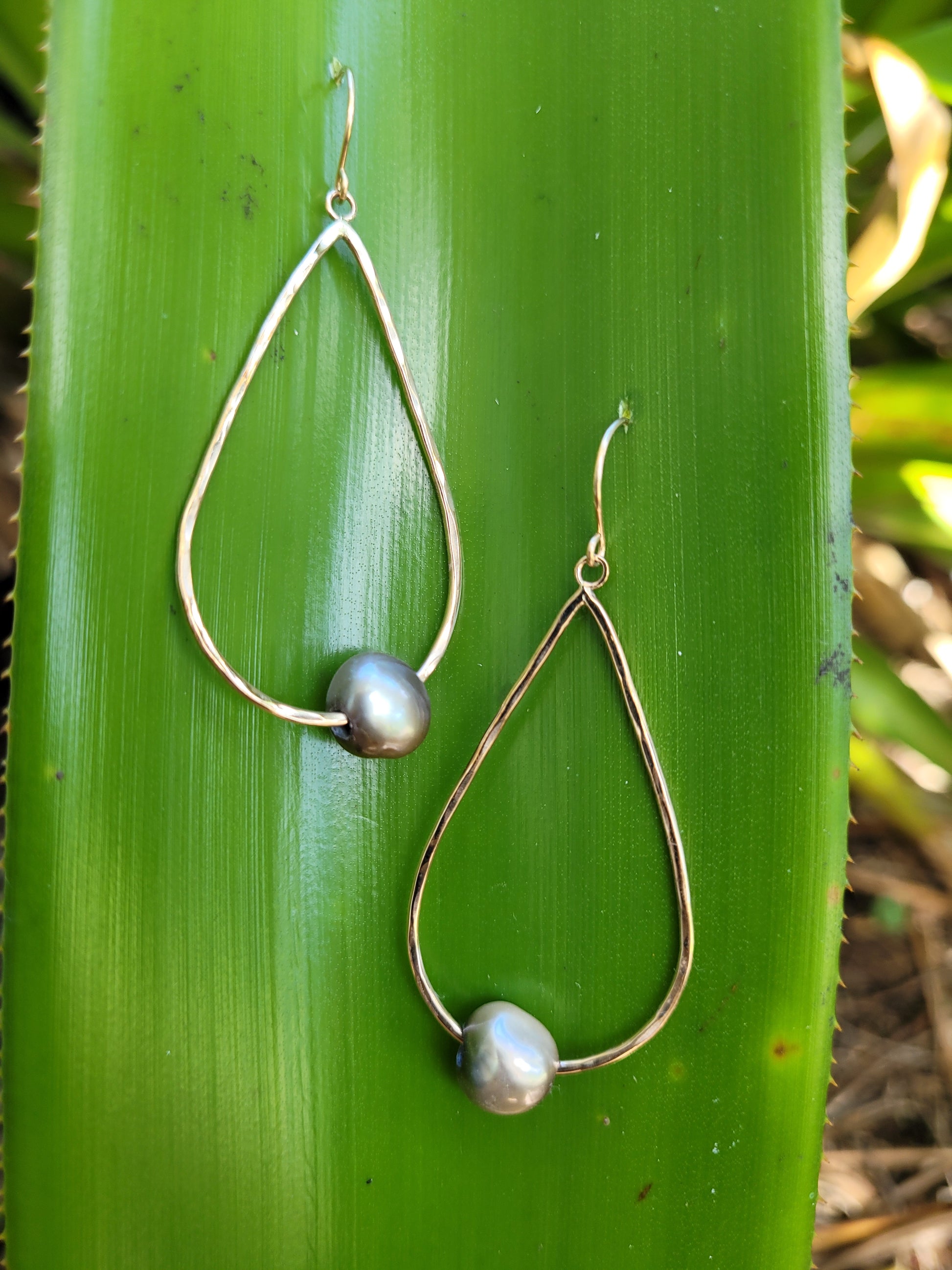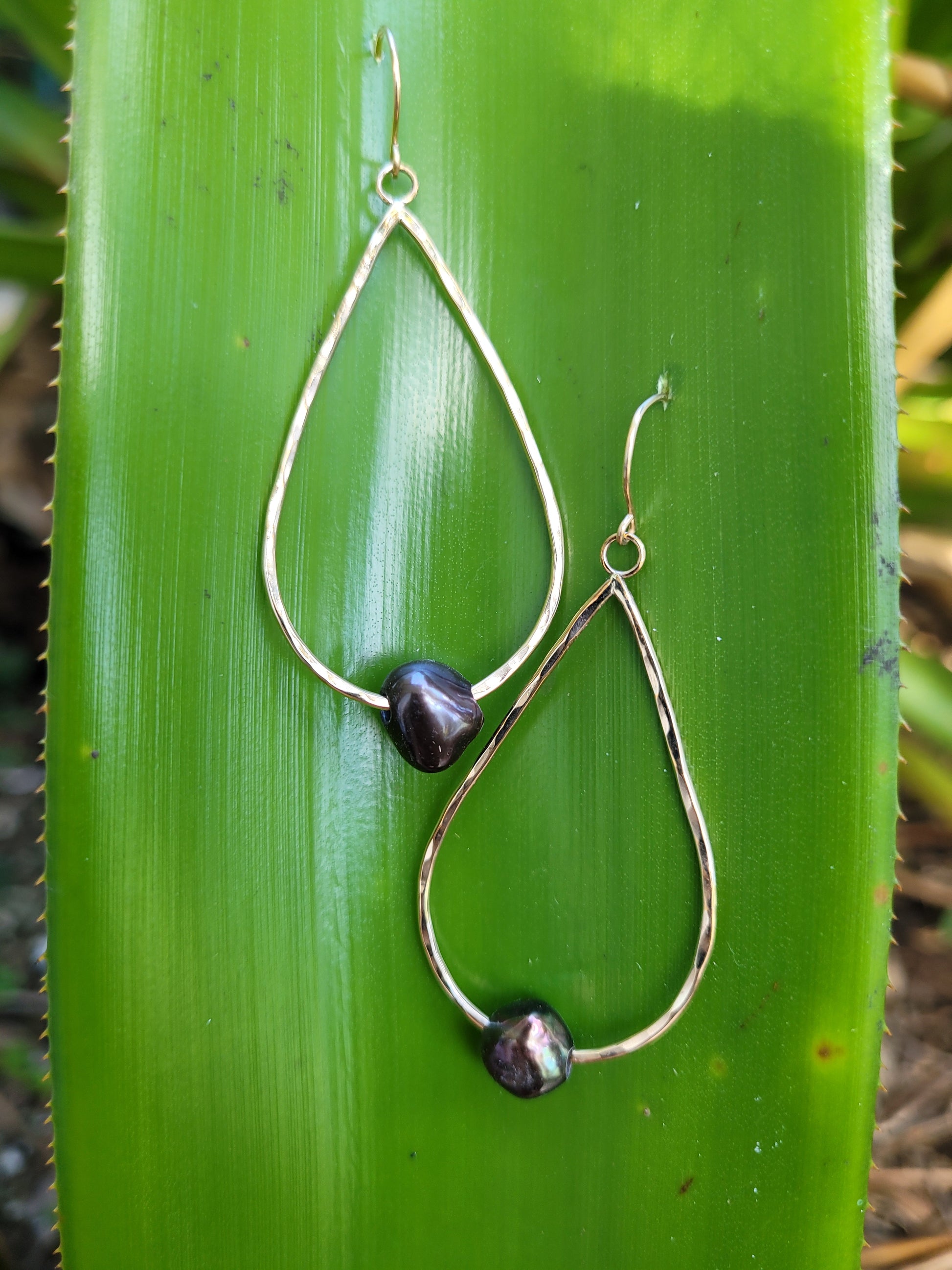 Baroque pearls set in a handmade large teardrop shaped dangle and handmade ear hooks.