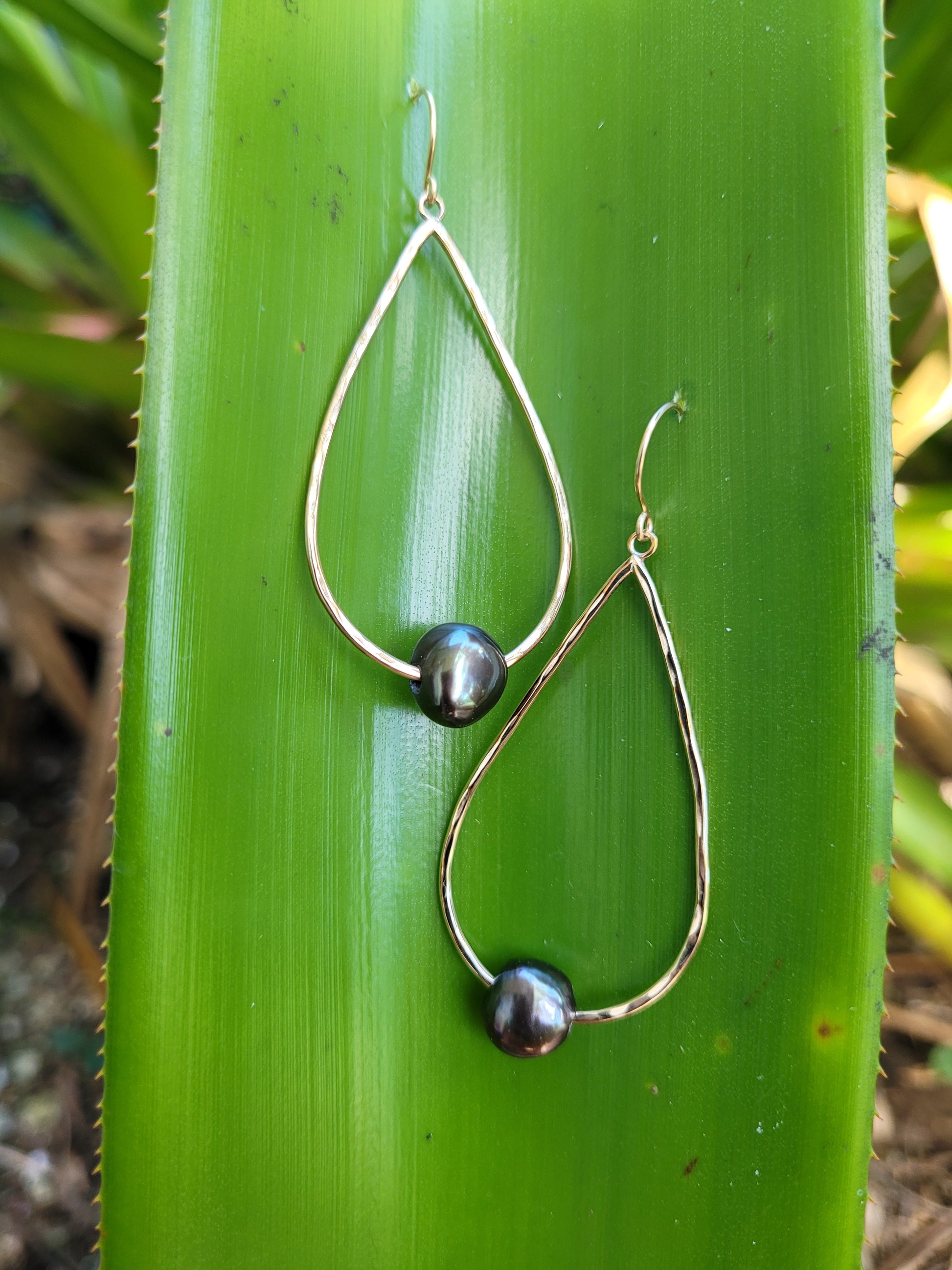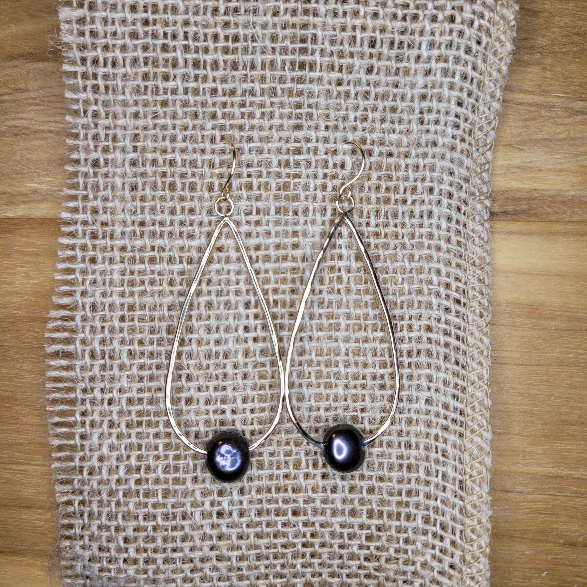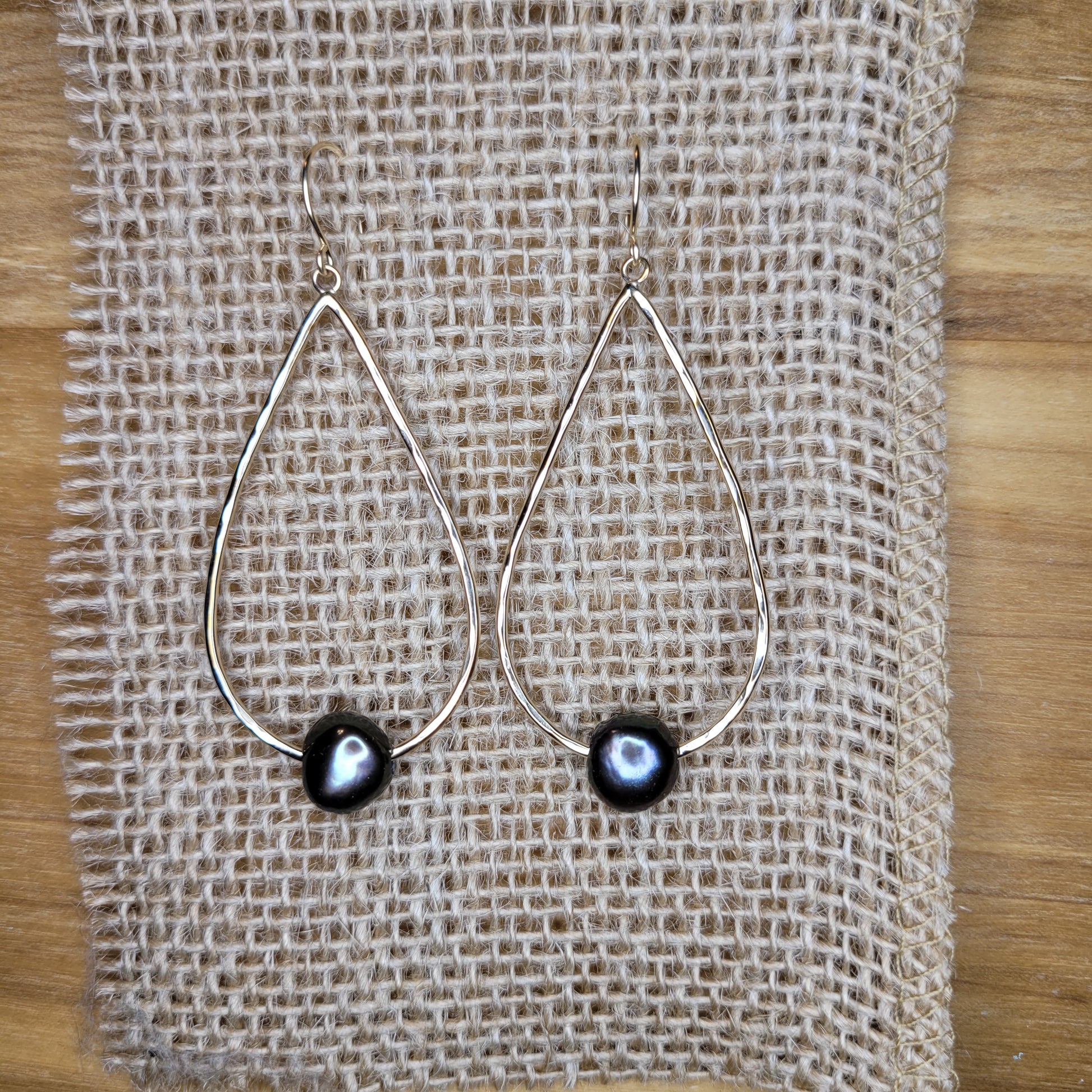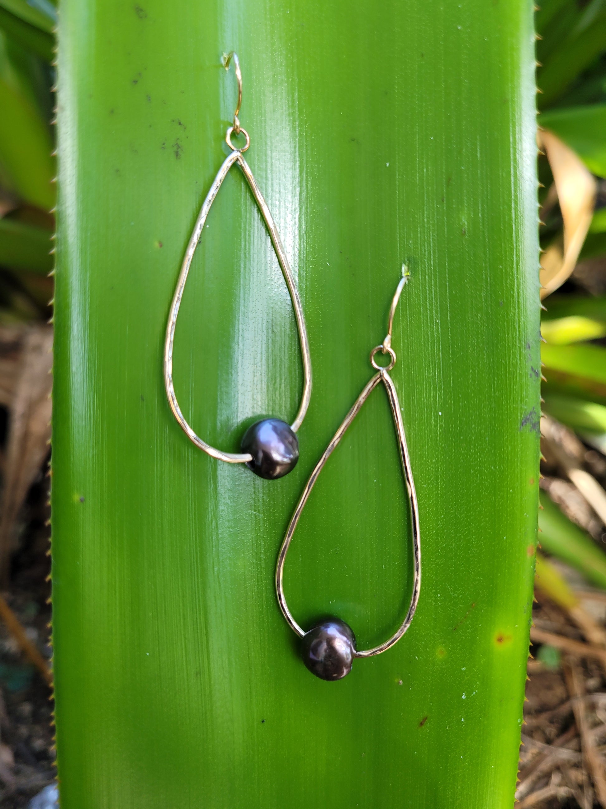 Baroque pearls set in a handmade large teardrop shaped dangle and handmade ear hooks.