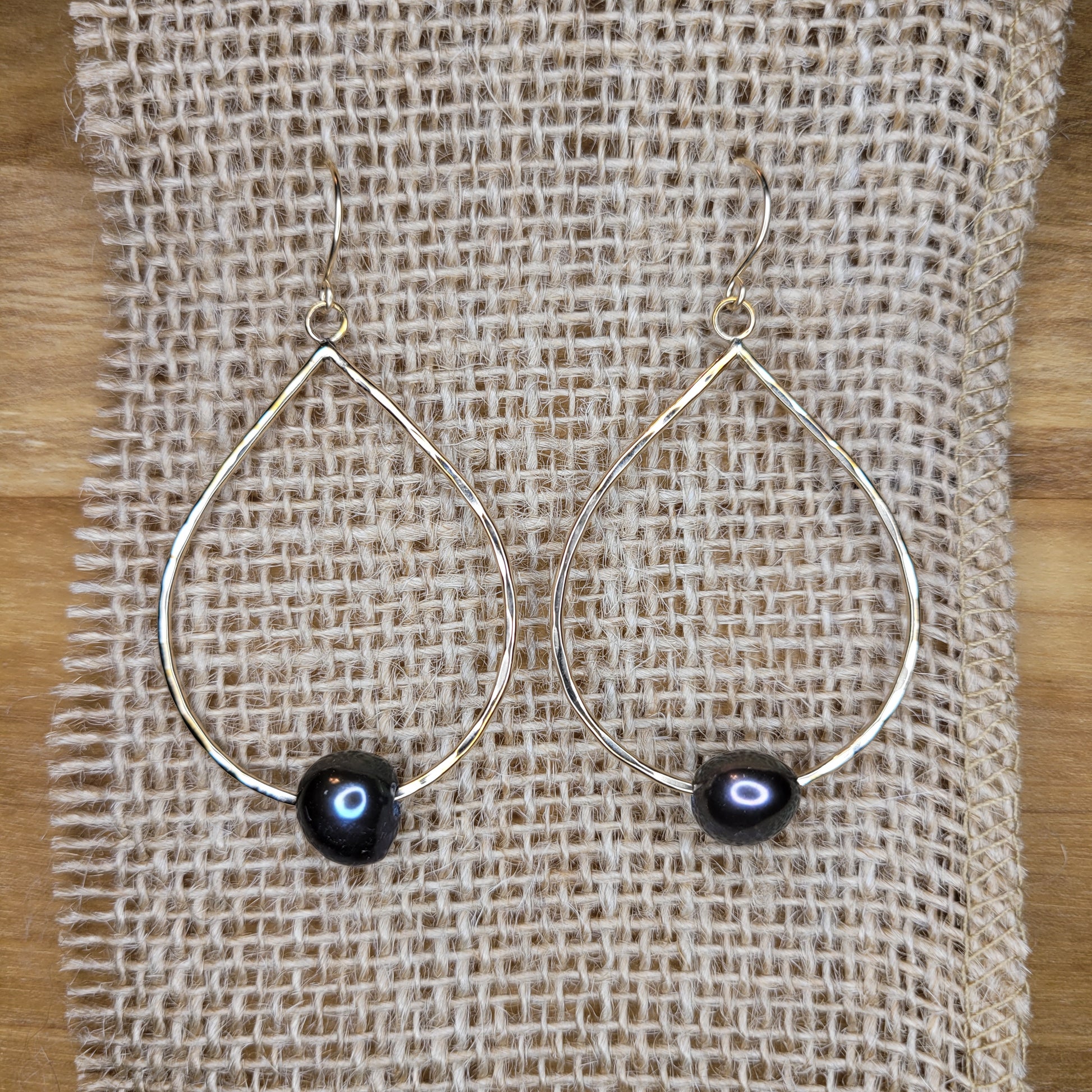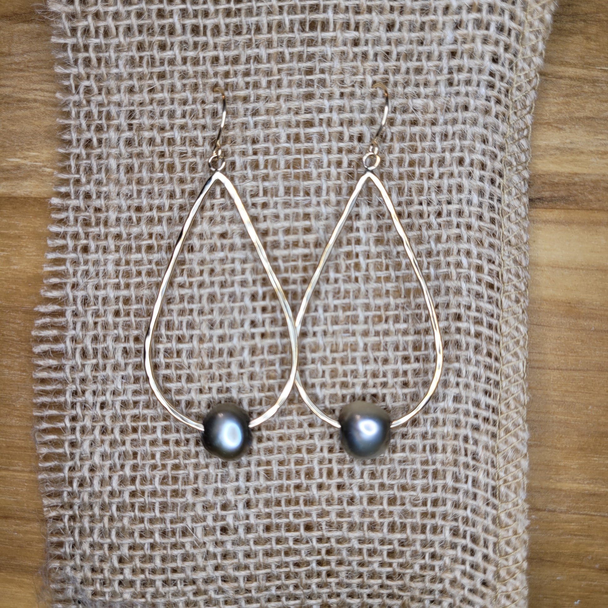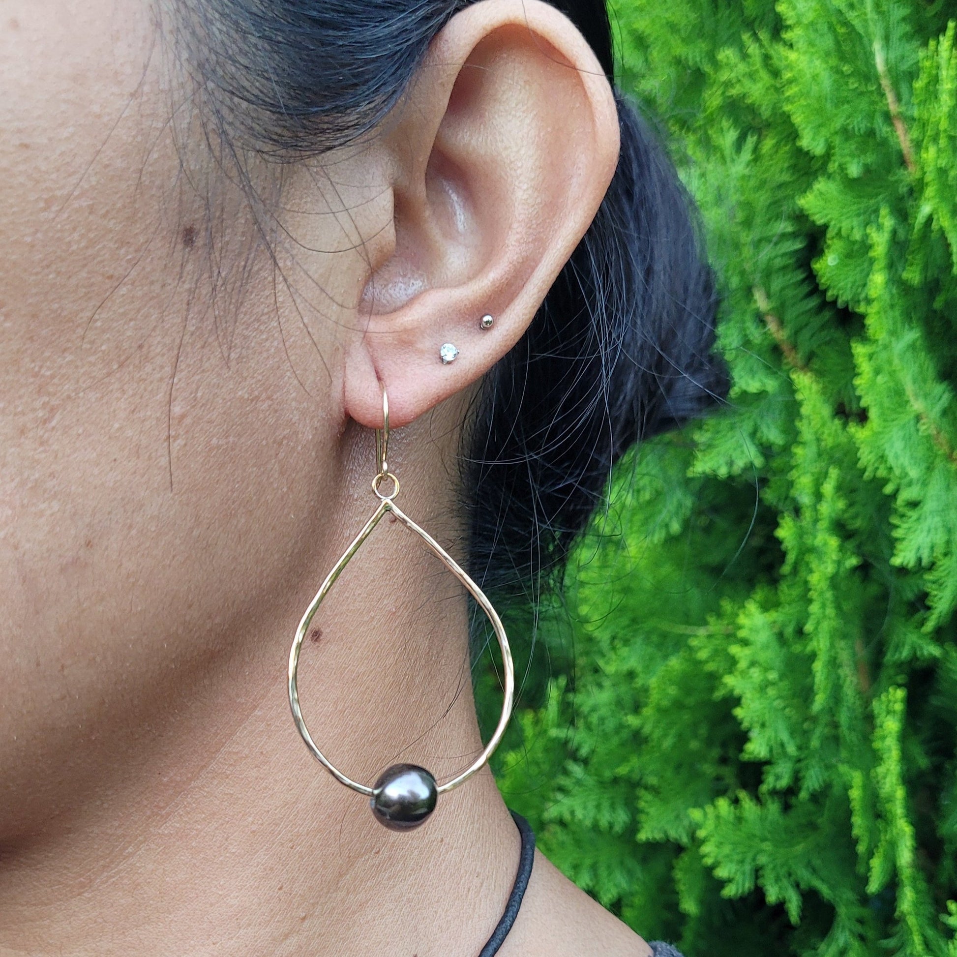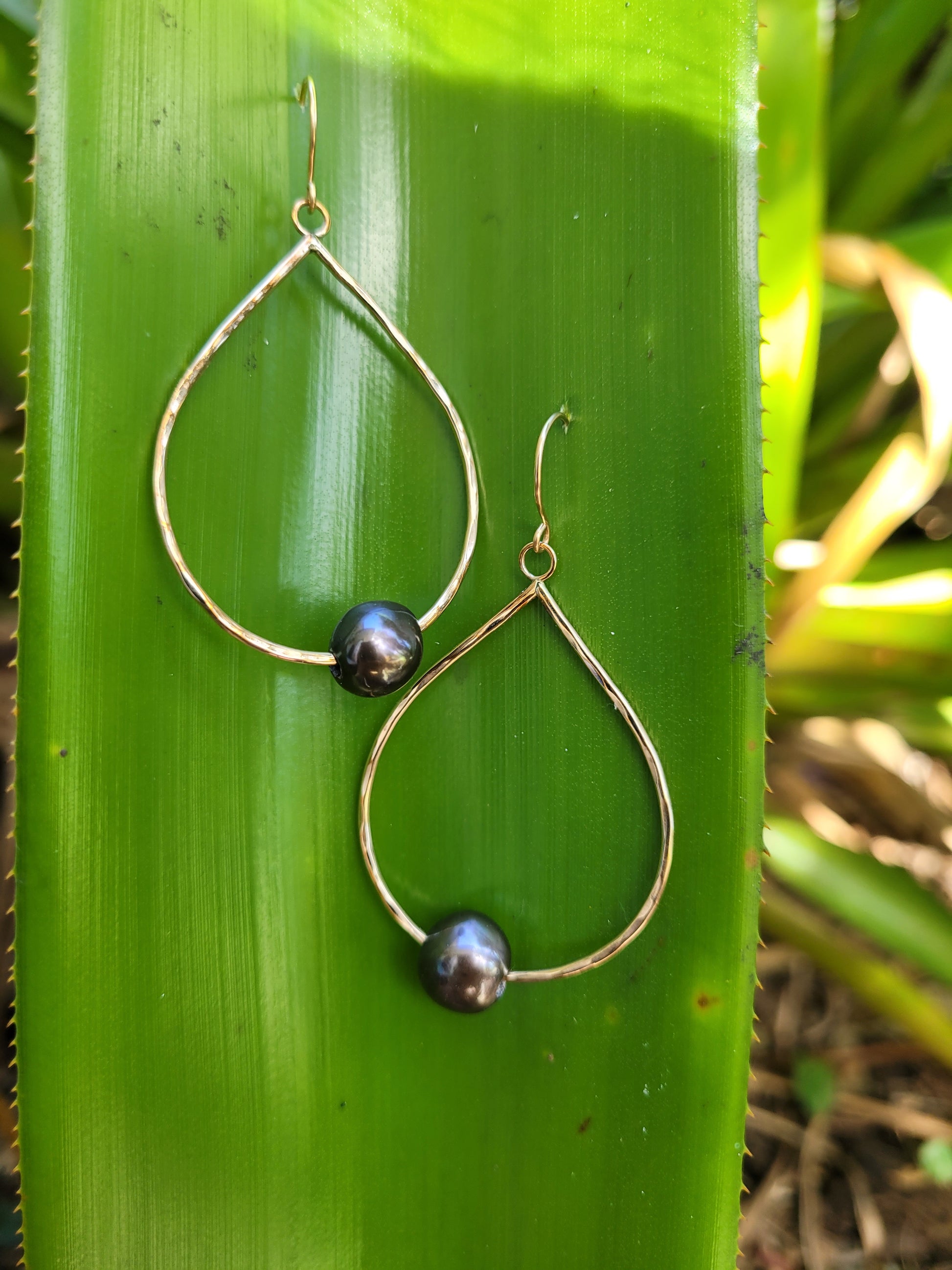 Baroque pearls set in a handmade large teardrop shaped dangle and handmade ear hooks.