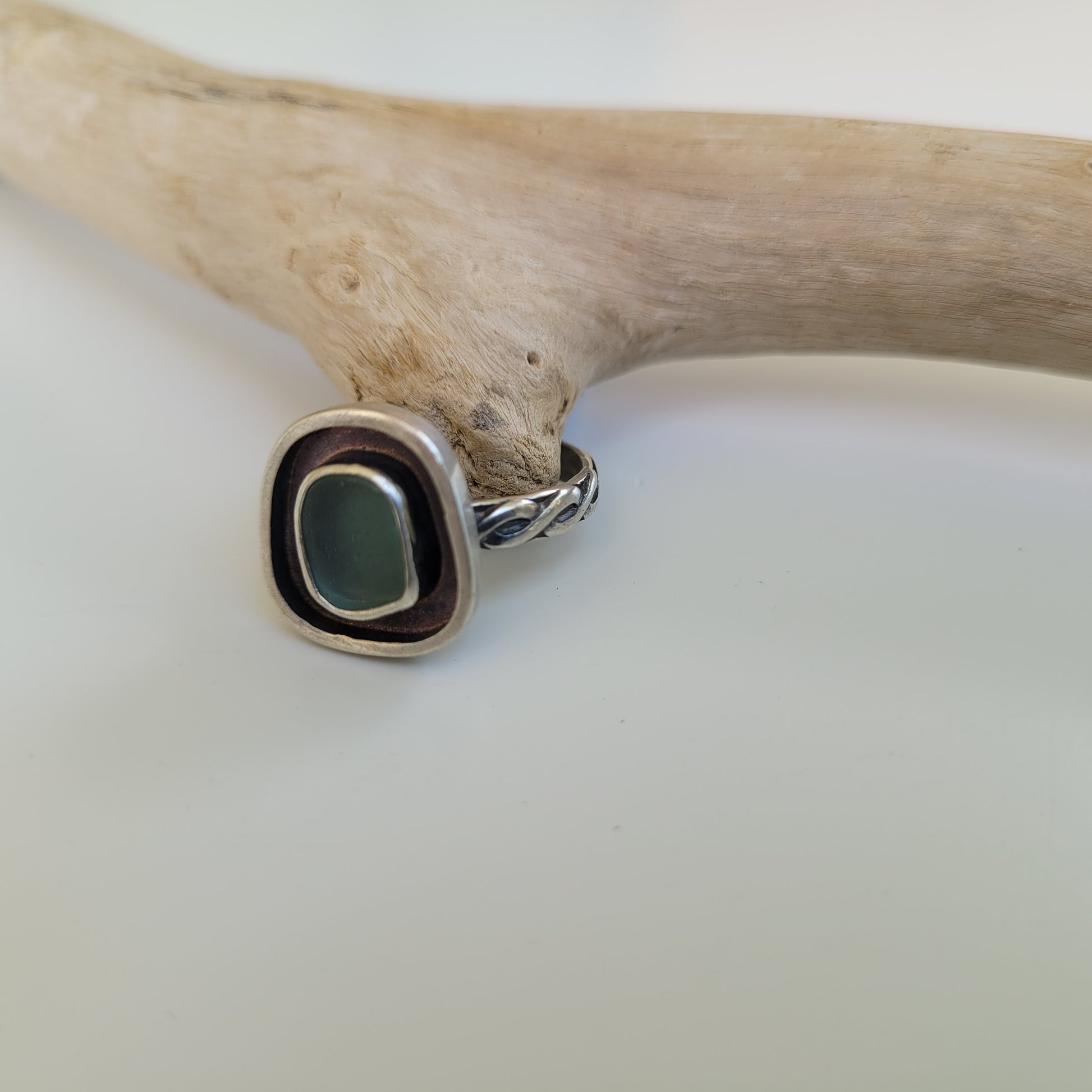 Materials: Local sea glass, Sterling silver (.925) and Argentium silver (.935)