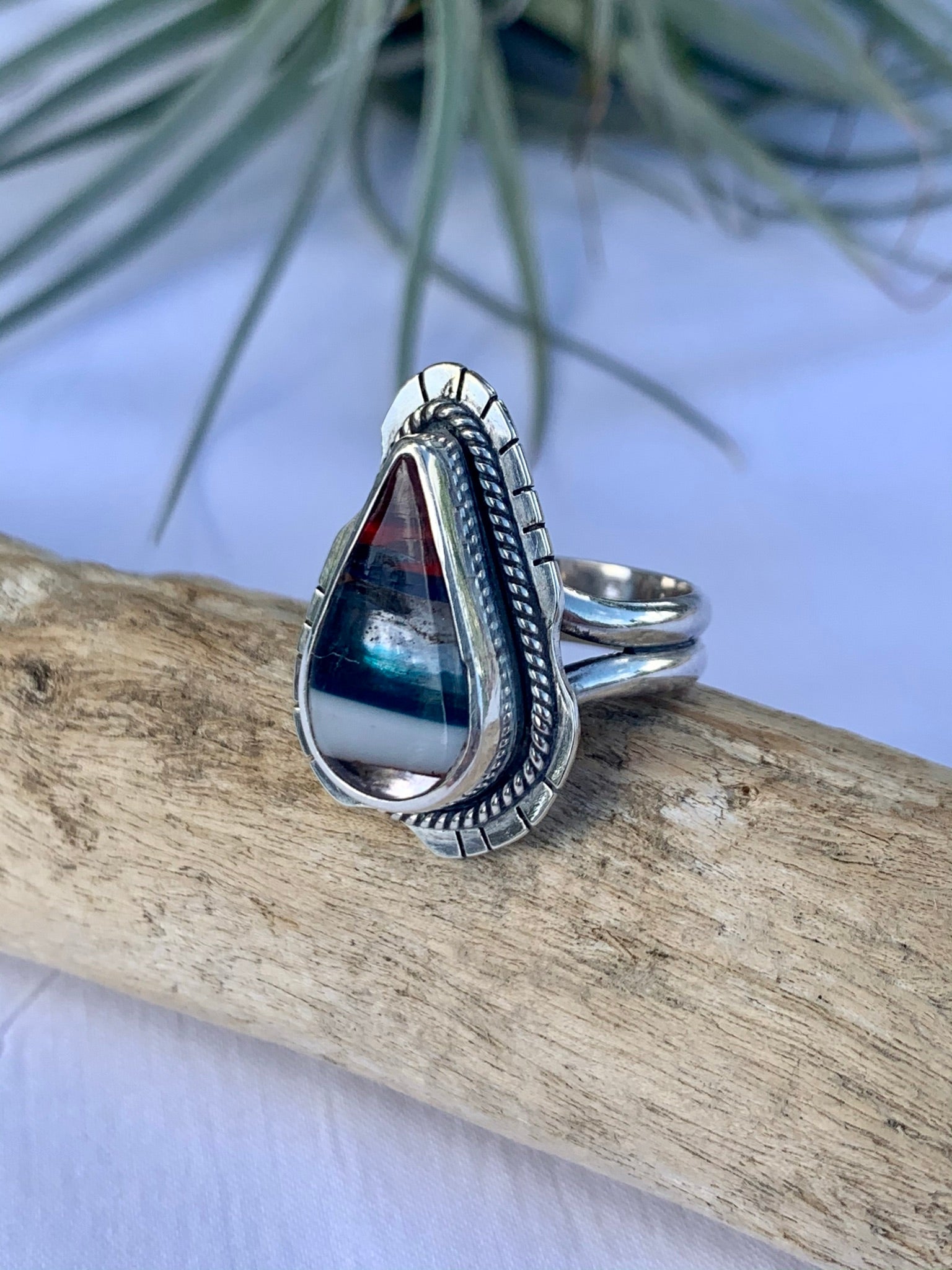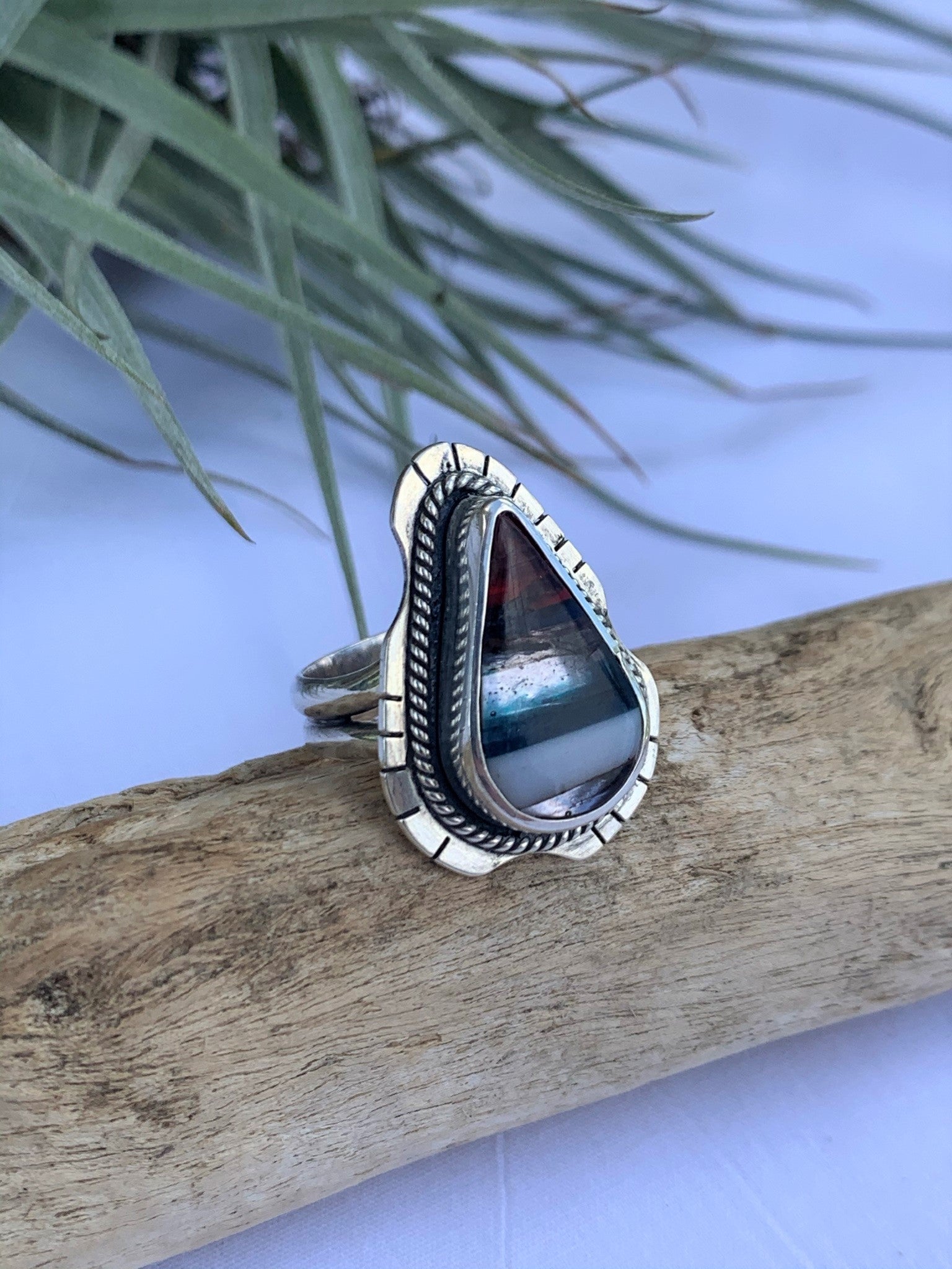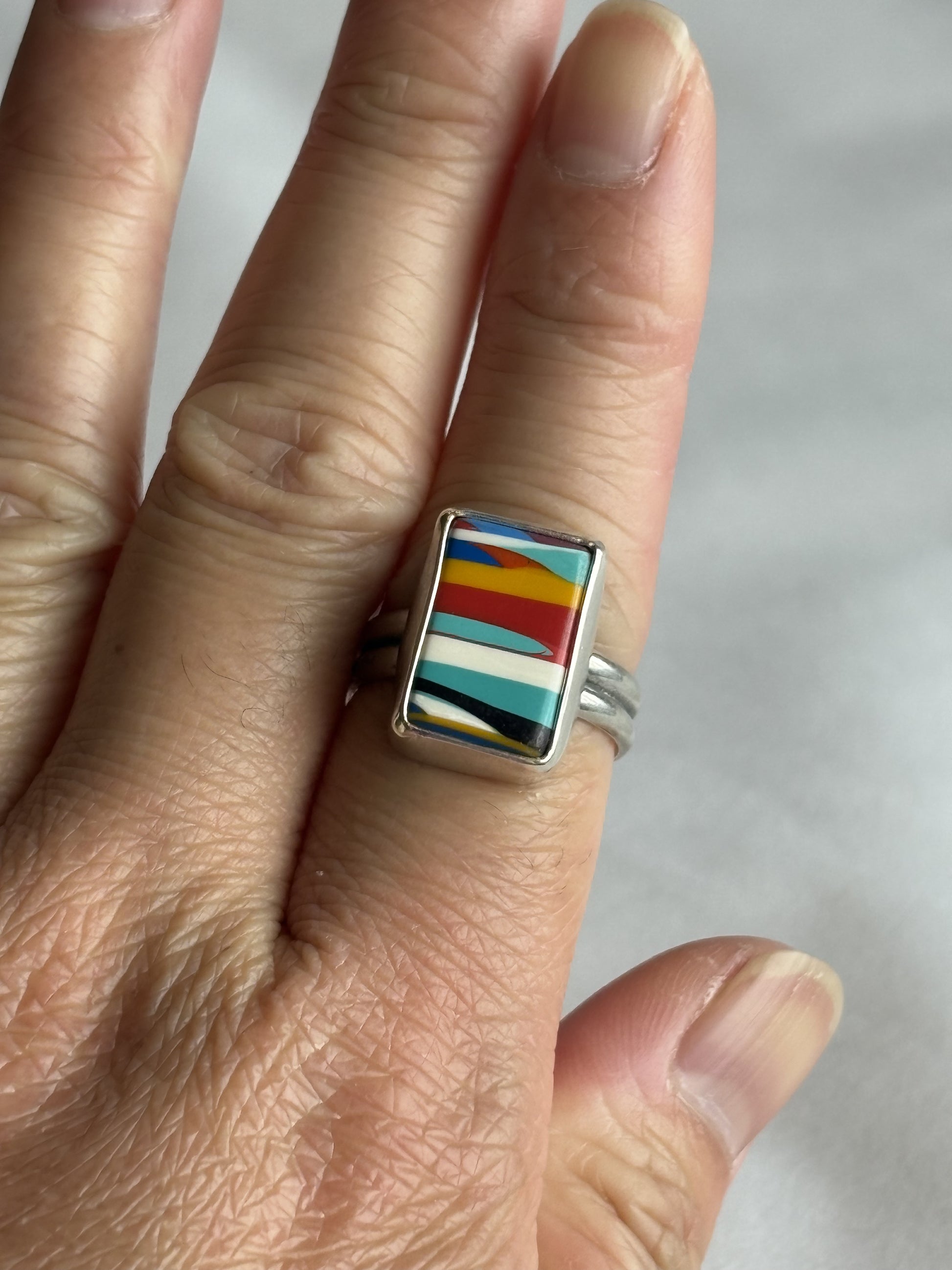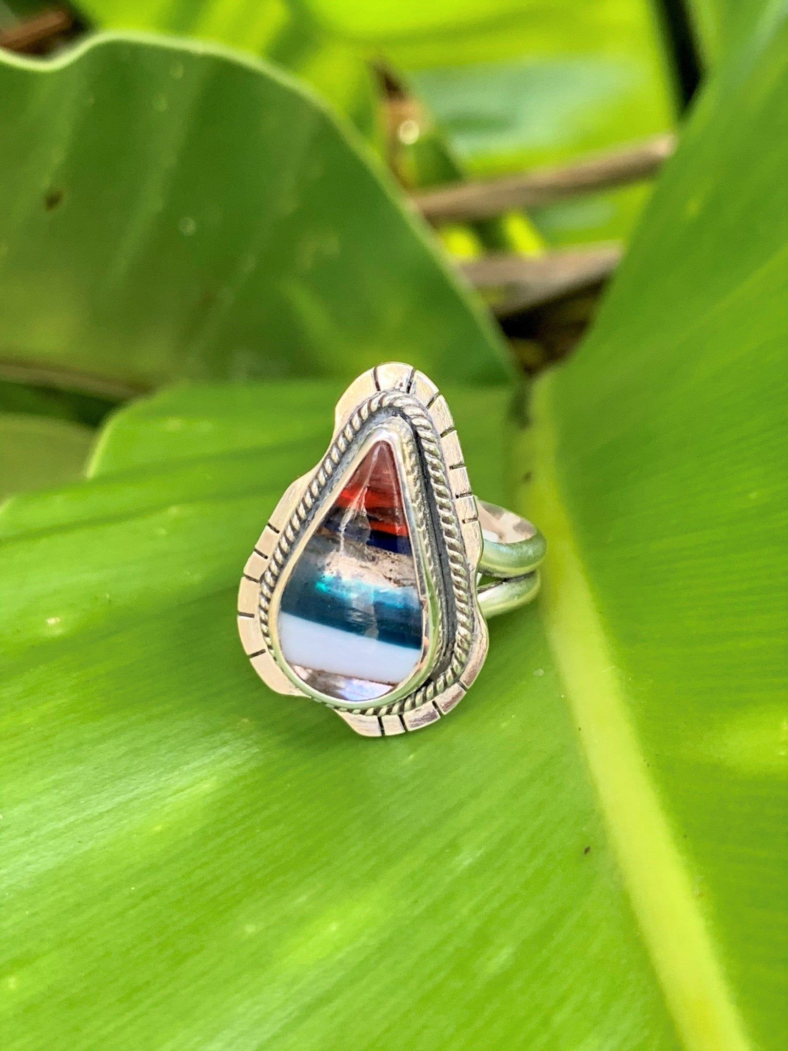 Hand-cut and polished repurposed surfboard resin material (surfite) set in silver.