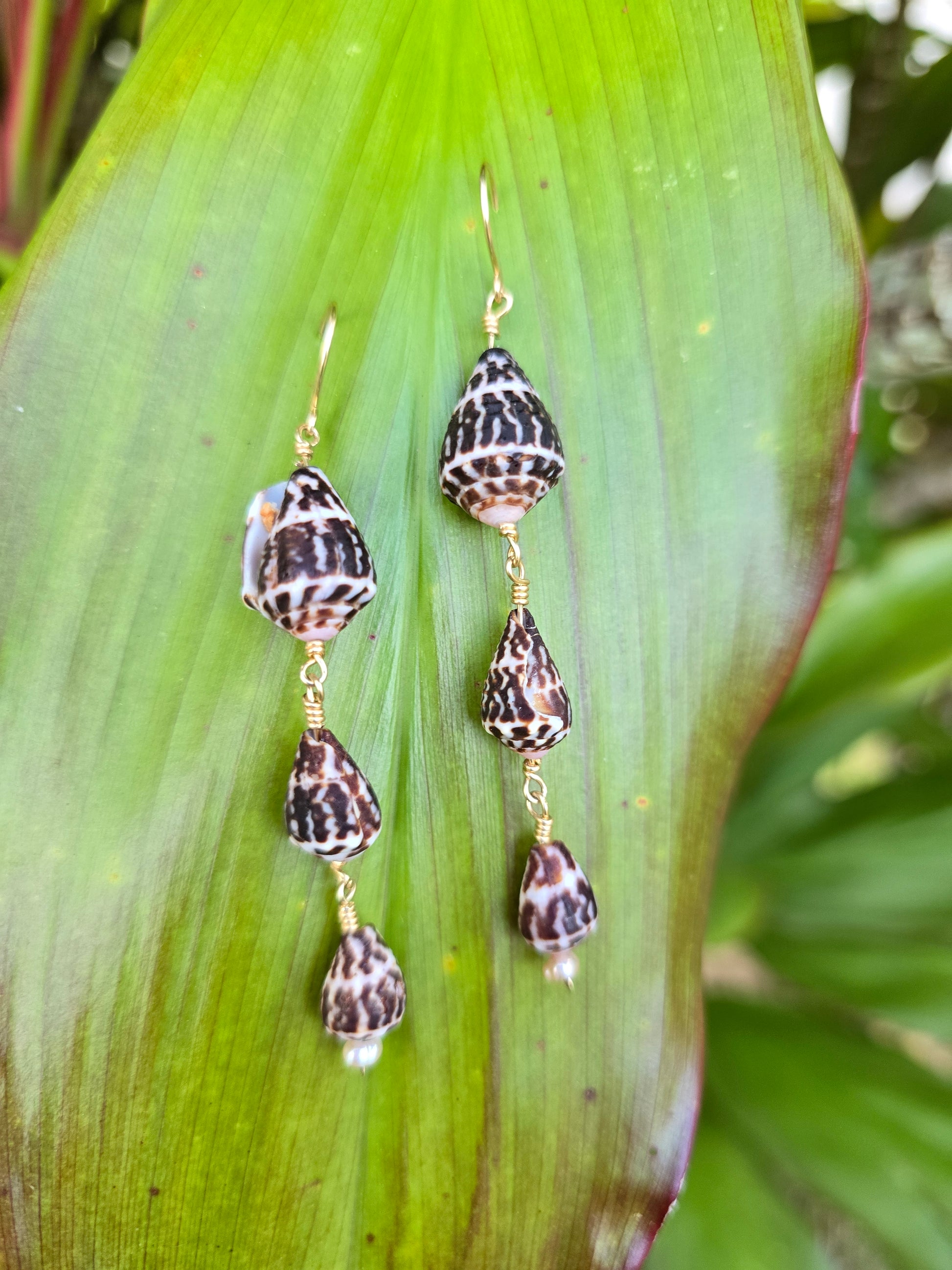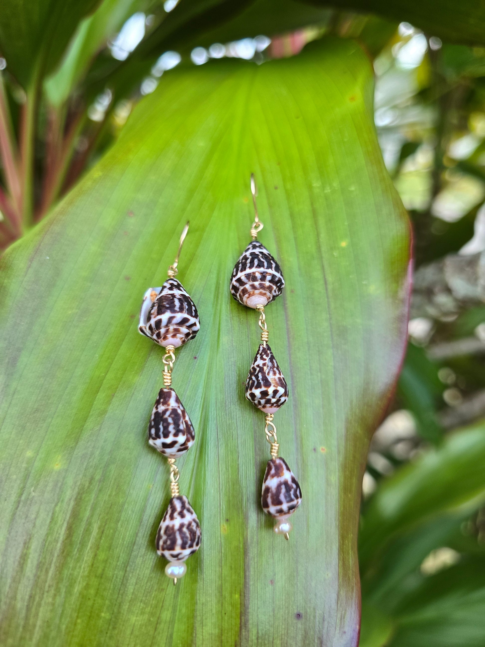 Guam found Chaldean cone shell dangle earrings