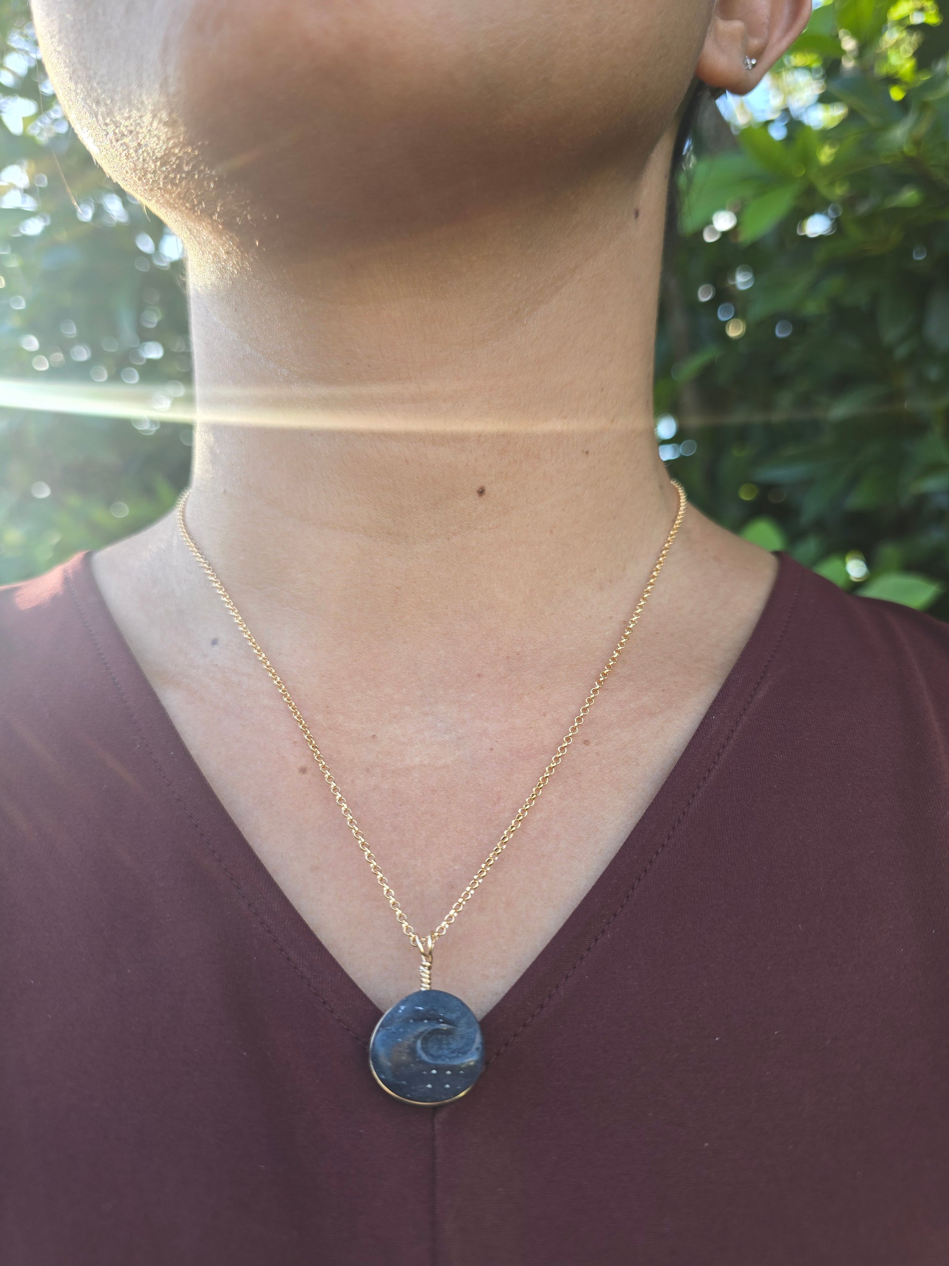 Nåpu carved into locally found blue coral on 18" rolo chain